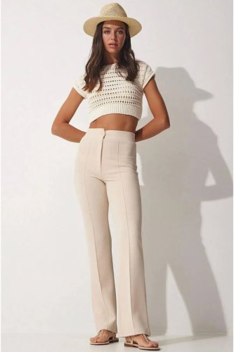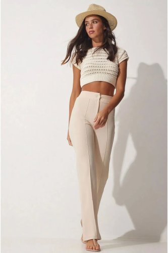 • Kadın yüksek bel full likralı krep kumaş pantolon