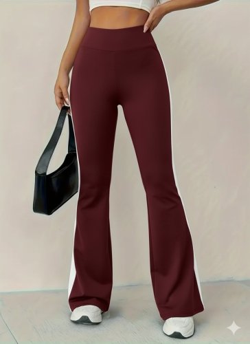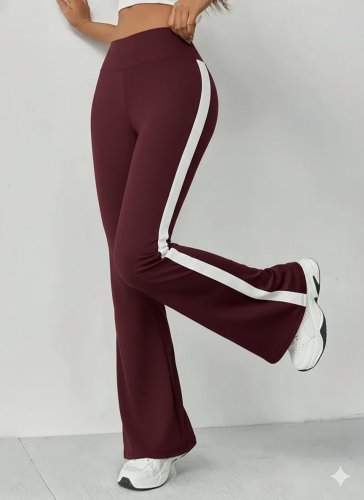 • Kadın yüksek bel İspanyol paçalı yanlardan şerit detaylı dalgıç tayt pantolon